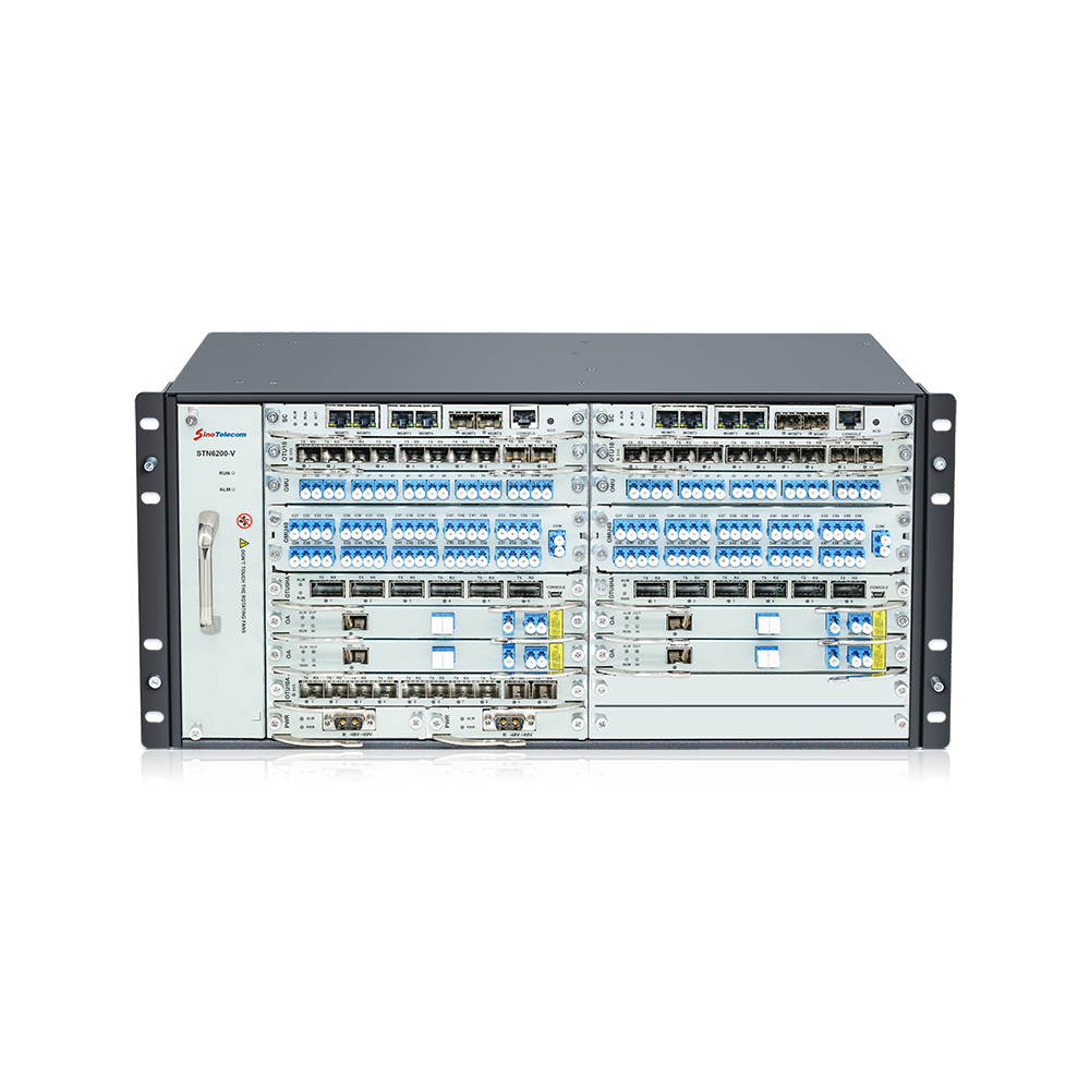The STN6200 platform is suitable for CWDM/DWDM/OLP/RTFS scenarios. It supports over 30 types of s ervice cards, such as OA/OUT/SAX/SAH/SOA/OLP/OBA/FEC/RA/OTN/OSC/OMU/DCM, etc. The service cards support hot swap. STN6200-V has a compact hardware structure, low power consumption, and flexible configuration. It supports 1+1 dual power backup (dual AC220V / dual DC48V / AC220V+DC48V) and 1+1 SC board card backup. The chassis offers high reliability.